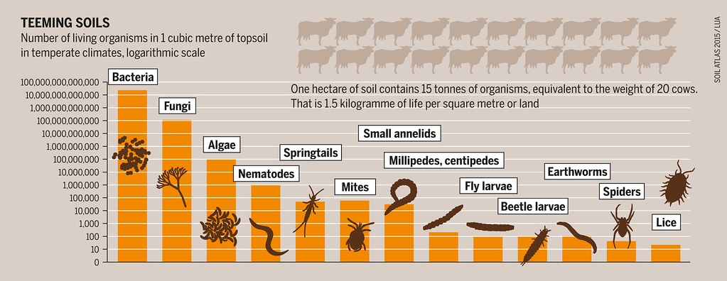 In einem gesunden Boden befinden sich je Quadratmeter ca. 1,5 kg Bodenlebewesen: